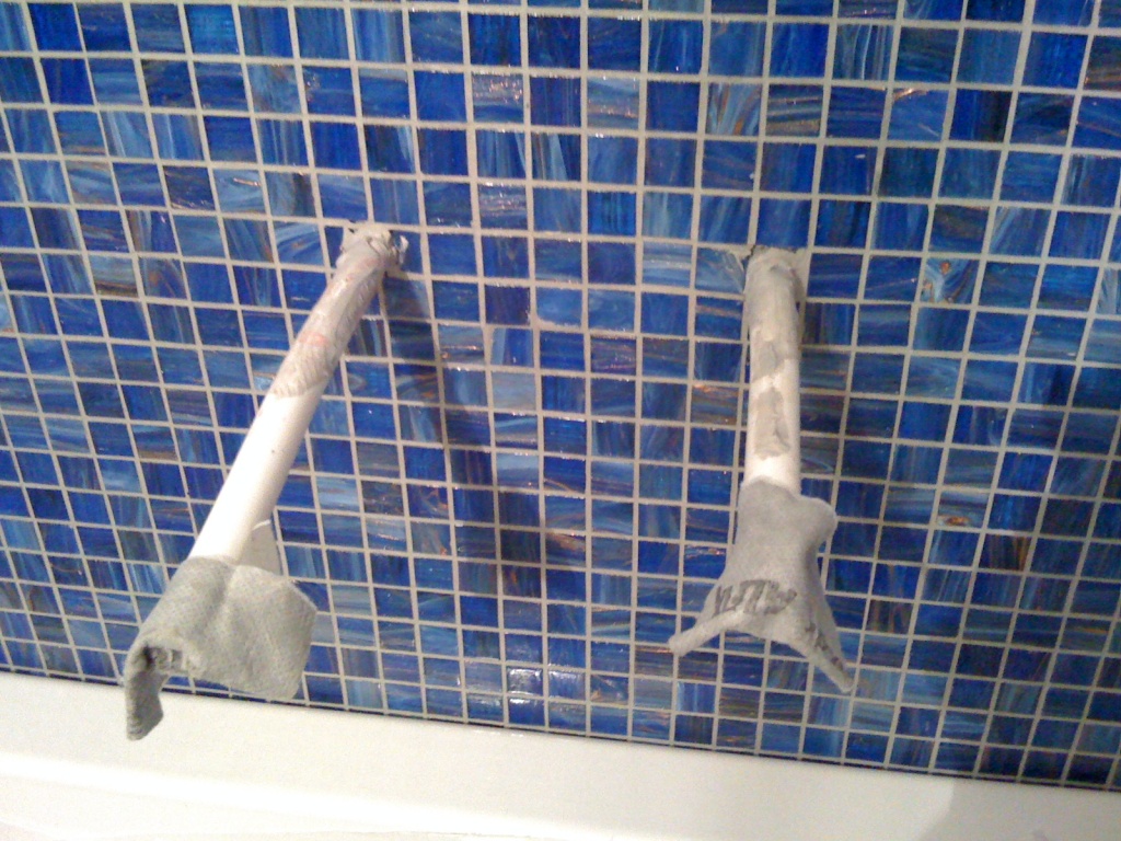Nu tänker jag inte gråta mer. Idag. Och imorron tänker jag fråga hur det skevt inmosaikade badkaret ska se ut när det är färdigt. Å så kommer jag säkert inte kunna låta bli att fråga hur prioriteringen ligger när det är verkligt platt, jämnt och snyggt vid det som apselut inte kommer att synas bakom holken och badkarsblandaren, men såhär vid det som kommer att synas vid vattenledningarna till handfatet?