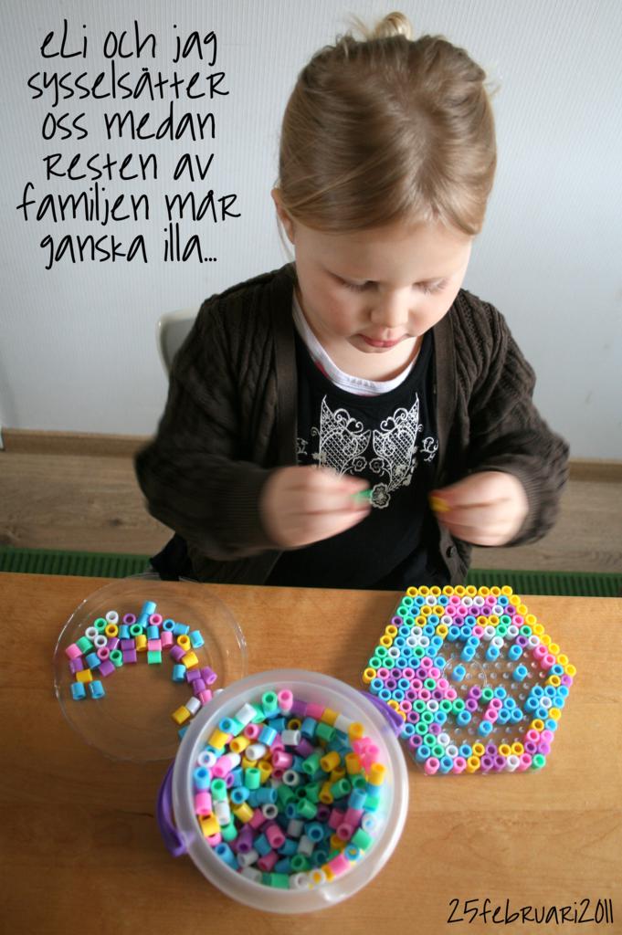 Nu gäller det att fokusera positivt och då konstaterar jag att vi liksom förra gången fördelar sjukan på halva familjen (åt gången?). Det började med att Milla väckte oss i natt – som vanligt – men den här gången somnade hon inte mellan oss – som vanligt – och när hon trasslat runt och bökat i ett par timmar kräktes den stackars nosen en modest liten pöl, och vi vågade hoppas att den bara var ett resultat av gårdagens kvällsmat på BK i Ullared (premiärhamburgaren mumsades med enorm förtjusning och vi fick hindra henne från att sluka hela; Burger Kings lilla burgare är bra mycket större än McD:s dito?). Nå. En halvtimme senare förstod vi att det inte gick att skylla på skräpmat och en förmiddag rikare var lilla magen alldeles tom.