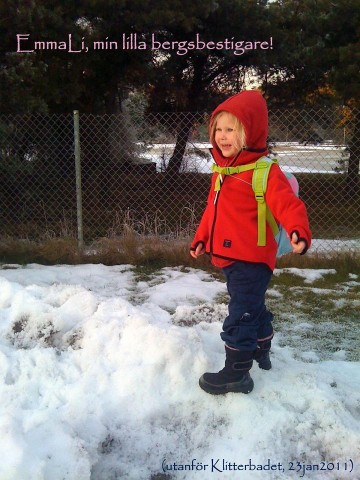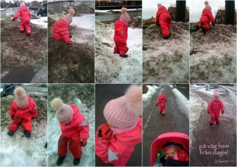 Roligt med Milla nu är ju att ju mer hon nu står och går, ju annorlundare kläder kan hon ha. Från att ha krypit omkring i mjuka tajts och kalasbyxor töltar hon nu runt i jeans och kjolar/klänningar. Frågan är om det inte är dags att inom kort låta bäbi miss Milla uppgradera till kiddi miss Milla…? Men… min lilla bäbi!! Min sista bäbi… måste nosa på karamellen ett litet kort slag till!