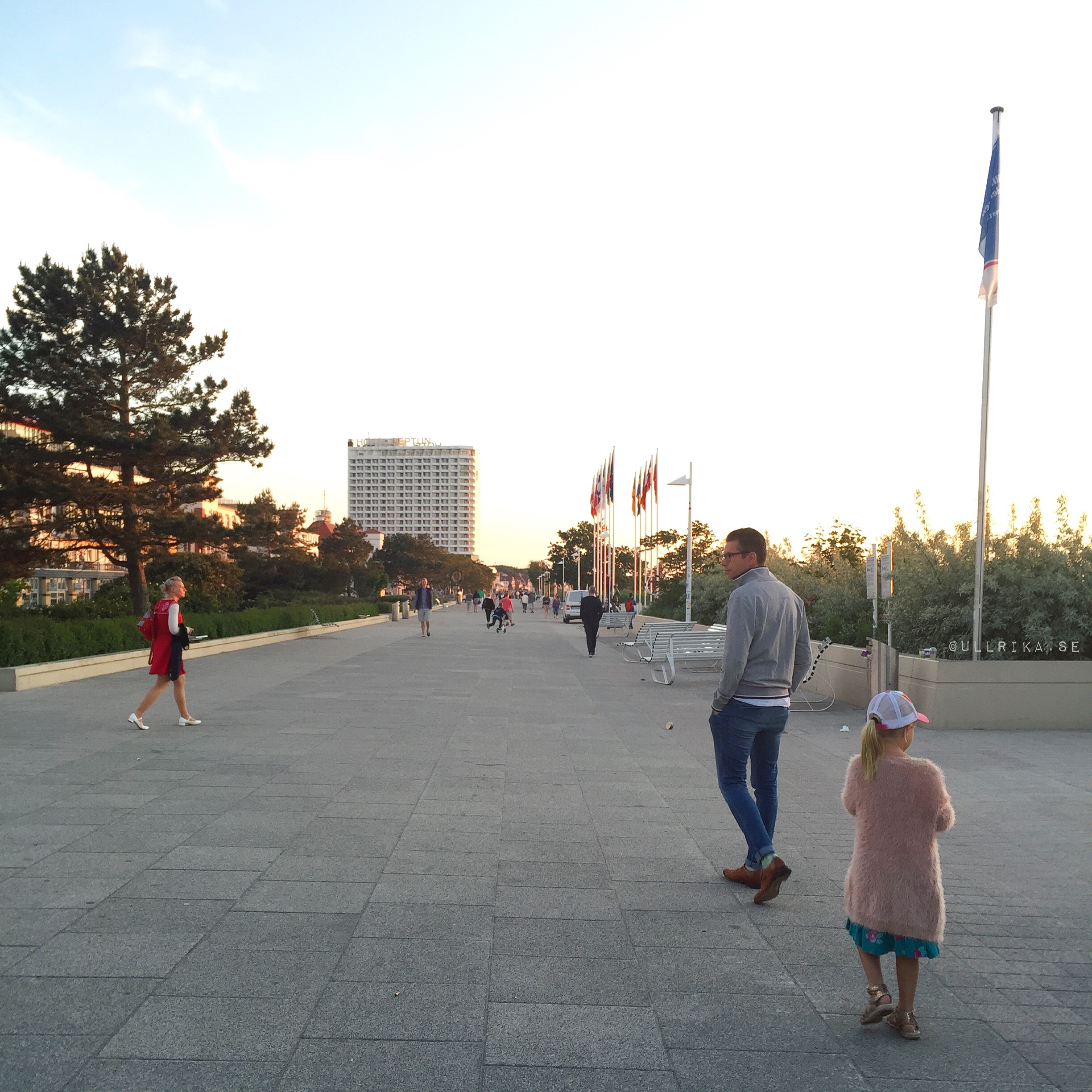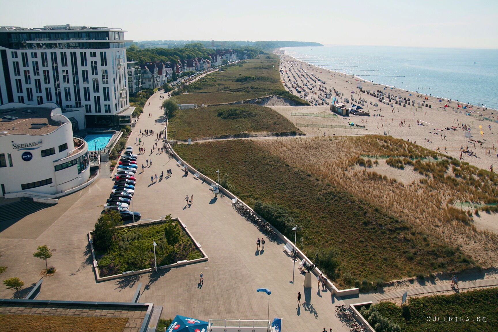 Jisses va vackert vi hamnat! Hela Warnemündes kustlinje nedanför våra ögon från tionde våning på Hotel Neptun. En av fotona i bildspelet skulle mycket väl kunna vara taget från vårt rum!