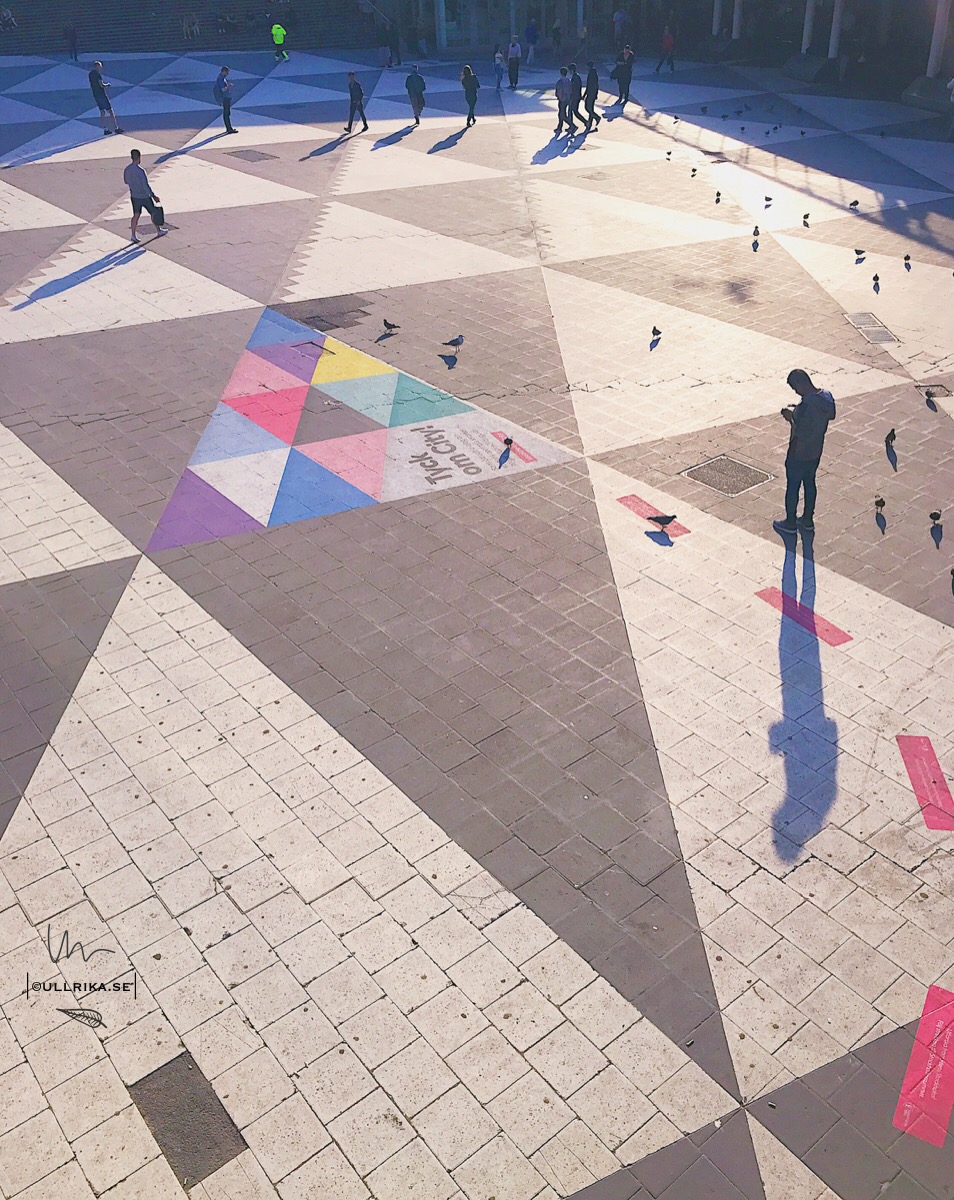 Därefter promenerade vi tillbaka till hotellet och passerade på vägen en skoaffär på NK (sparade flera tusen på att Jimmy Choos pumps inte förs i halvstorlekar 😁). Vi delade på fyra kulor glass i eftermiddagsvärmen, visade var dom där killarna ska bada nakna (“där är ju inget vatten?”) och hur ljuset leker på plattan.