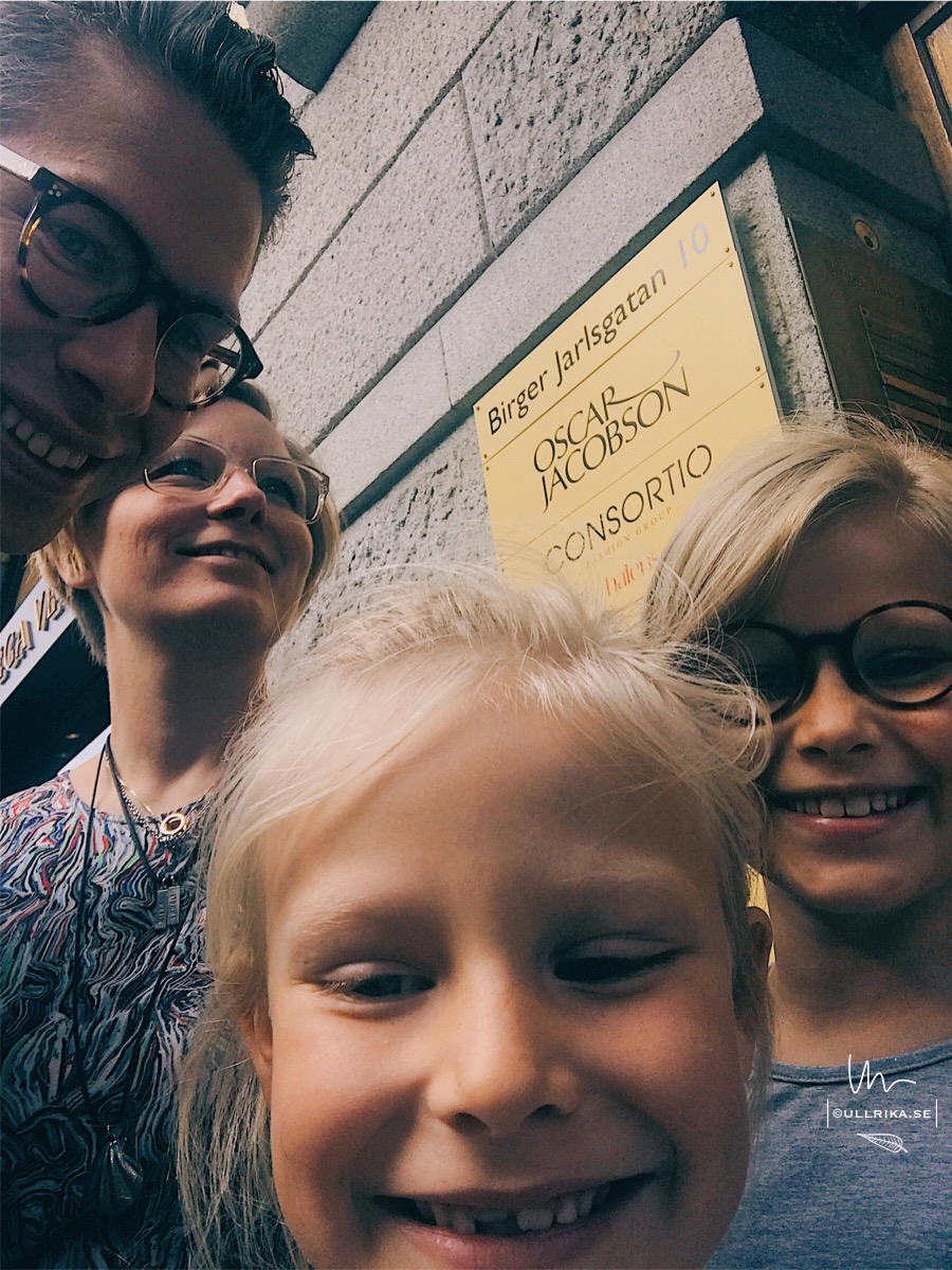 Men för att ta det från början: Vi inledde resan med buss till Göteborg och därefter åksjukeframkallande X2000 till Stockholm. Väl framme var vårt rum inte klart så vi lastade in väskorna och galopperade direkt mot Oscar Jacobsons showroom på Birger Jarlsgatan. Kidsen uppförde sig exemplariskt (med varsinn mobil 😉 och vi klippte i kollektionen inför SS18. Det blir blått nästa år – igen!