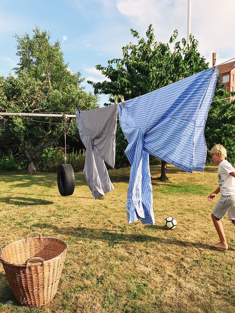 Vad doftar sommar mer än soltorkade plagg som vajar i vinden! Jag gick bananas med mobilen och trots att jag gallrat hårt blev det ändå en hel flock foton till galleriet… om du klickar på första fotot kan du sen bläddra dig igenom bildkavalkaden – eller låta bildspelet rulla automatiskt – istället för att scrolla. Bildtexterna hänger med också har jag märkt. Funkar kanske enklast att bläddra på dator, men även de flesta mobiler torde kunna hantera mitt galleri-plugin?