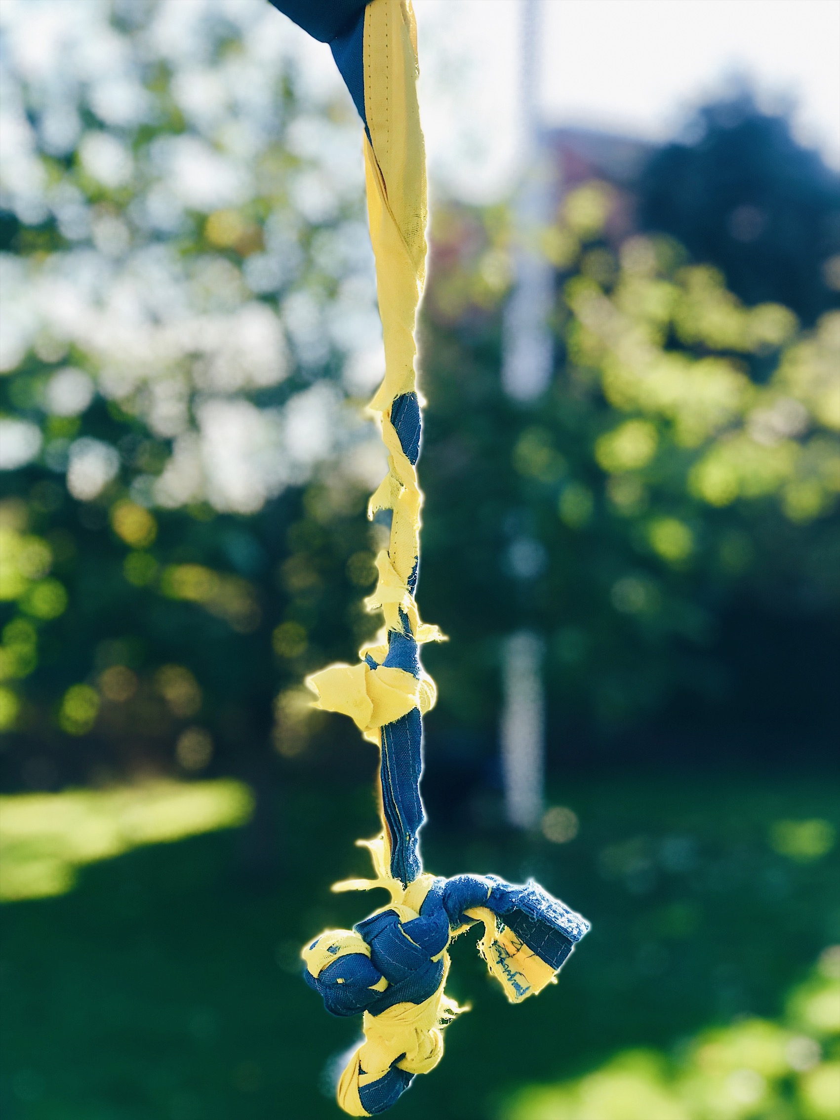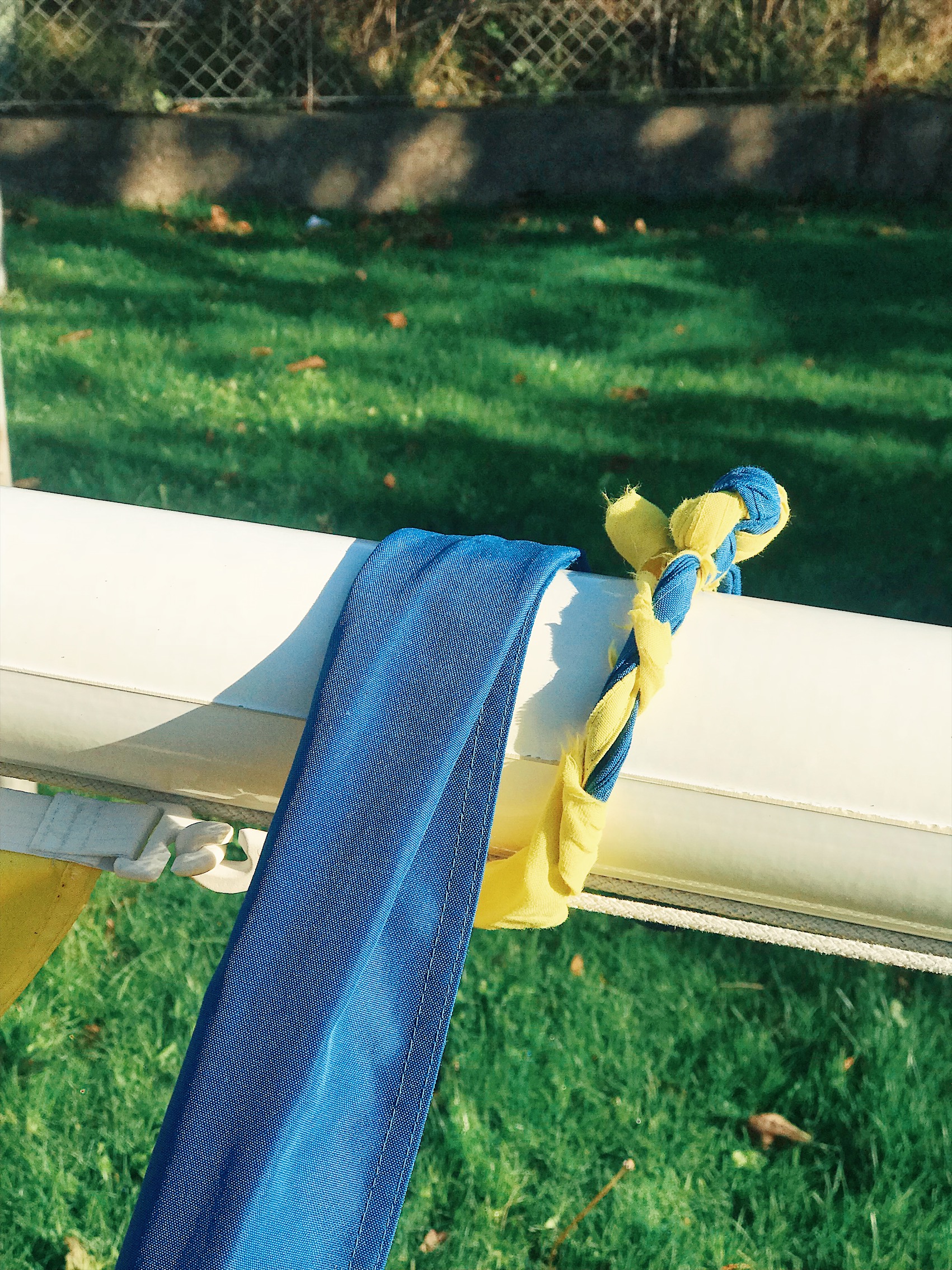 En knut för mycket 😀 jag brukar snåla och knyta upp även de allra klurigaste knopar vimpeln gör på sig själv, men här ser t o m jag mig besegrad! Det blir till att hissa en ny.