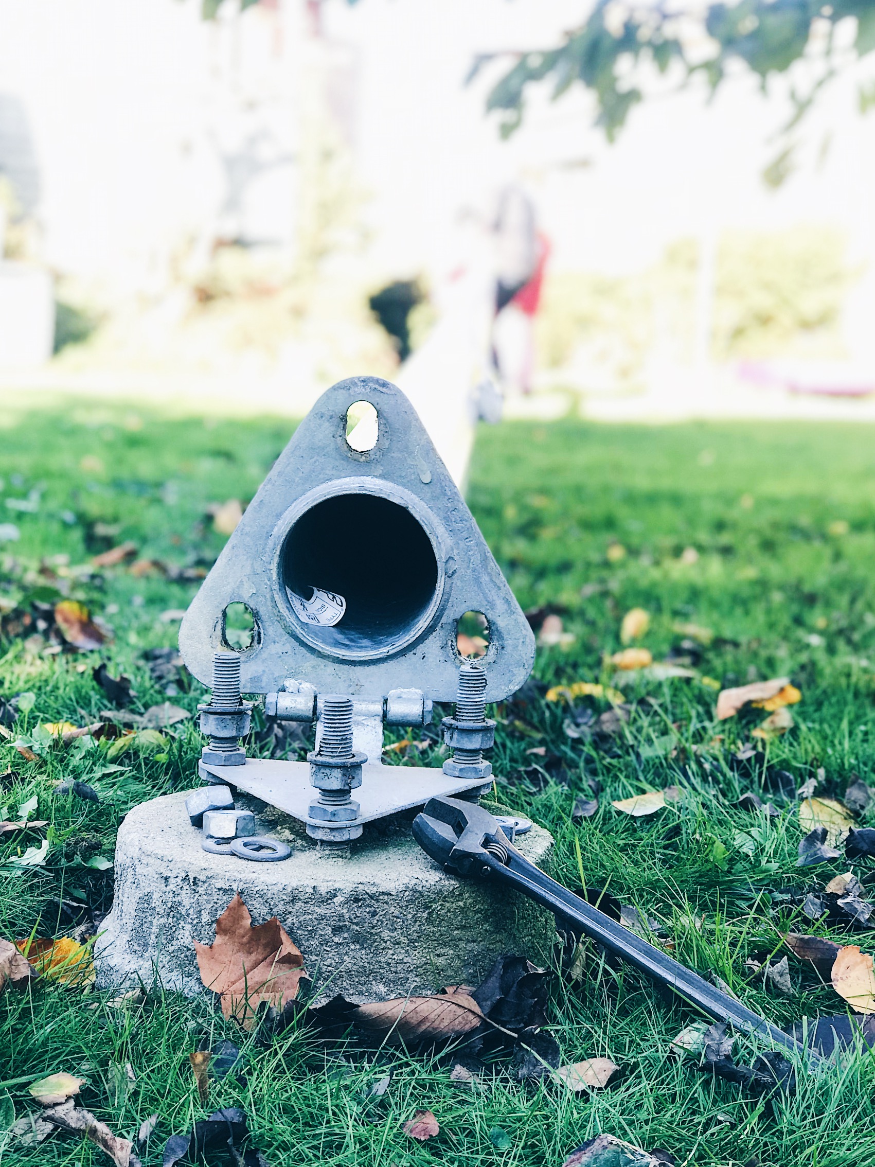 Hela äventyret avlöpte enligt plan och då alla hedbertar var oväntat samarbetskompetenta klarade vi oss alla utan skador. Inte ens körsbärsträdet, som vuxit till sig rejält sen placering bestämdes och flaggstångsfästet grävdes ner, klarade sig utan minsta skråma! Enda missnöjet nu är ju att vi står utan vimplad stång i trädgården… men det får la bli väl?