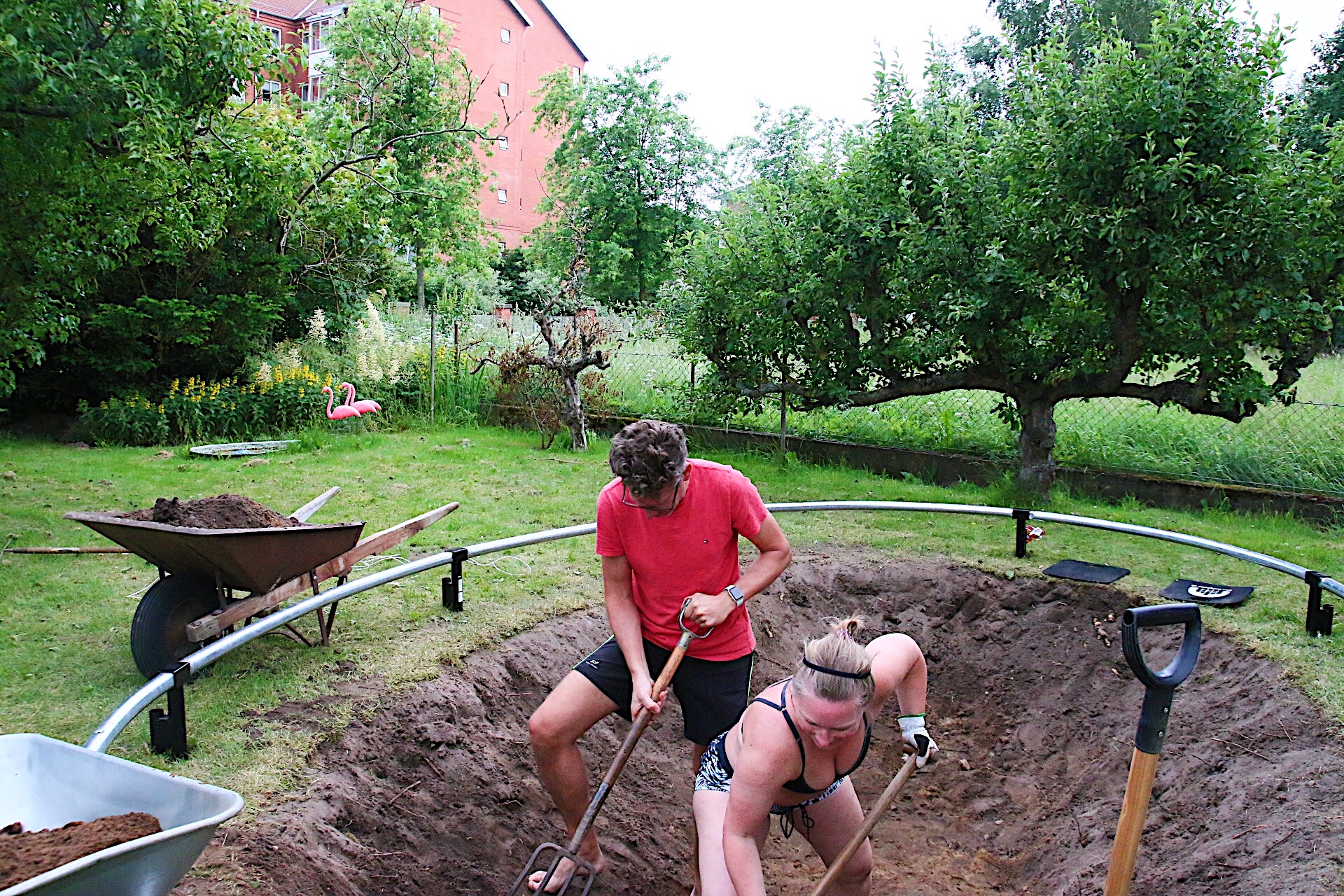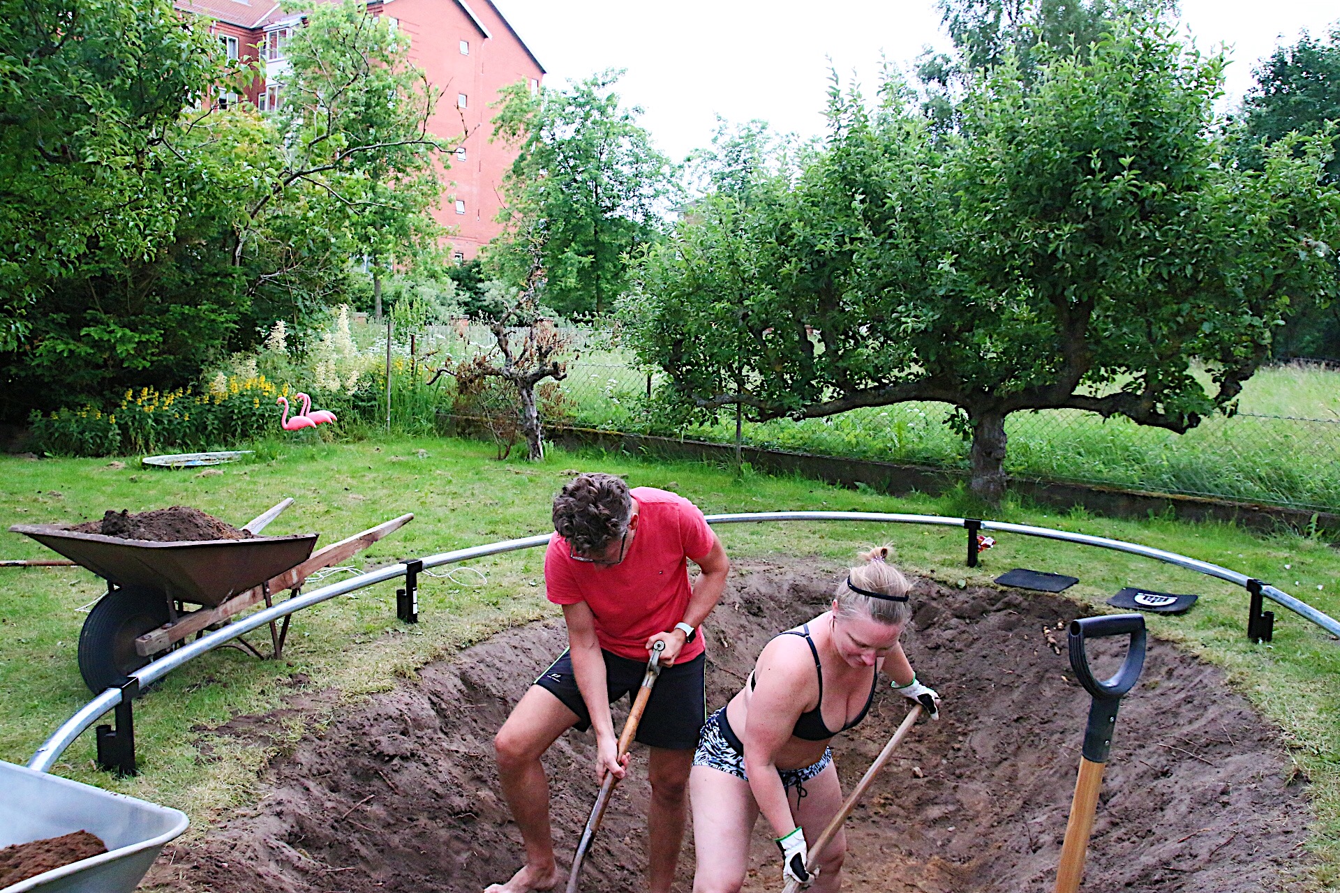 Klockan 18:56 tas beslutet att gropen nu är tillräckligt djup. Verktyg bärs in, skottkärror körs undan och muskler slappnas av. Händer och övriga kroppsdelar tvättas av och jag är rädd att vi kommer få brev från VIVAB pga mängden nerduschad jord.